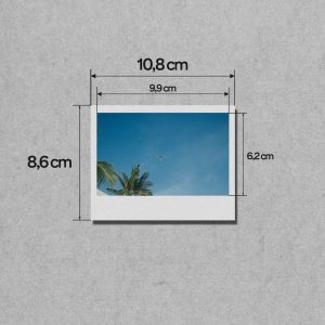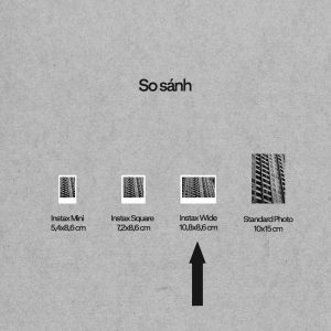 - In ảnh Instax Wide là kích thước Instax lớn nhất, phù hợp với ảnh phong cảnh hoặc ảnh nhóm . Kích thước được in bên ngoài là 10.8 x 8.6 cm với khu vực in ảnh là 9.9 x 6.2 cm.
