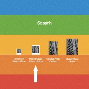 - In ảnh Polaroid Itype – Classic là kích thước ảnh phổ thông dùng để lưu trữ album, khá to và không phù hợp với để ví, túi. Kích thước bên ngoài là 8,8cm x 10,7cm với khu vực in ảnh là 7,9cm x 7,9cm.